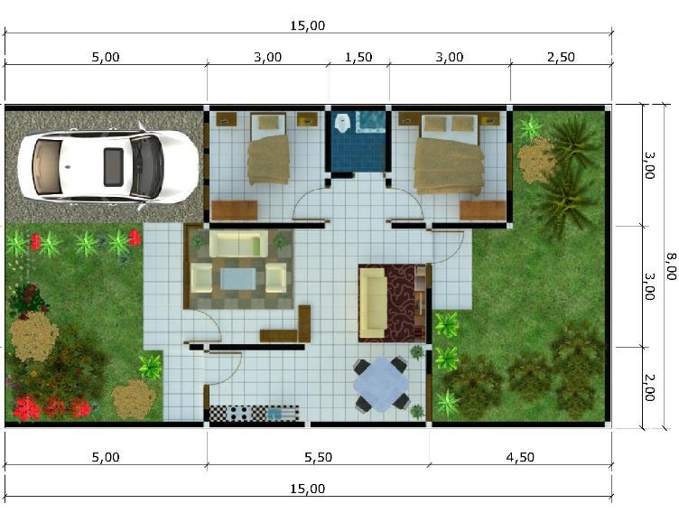 Vivienda 2 dormitorios Casa Modelo Kuaku, 43.2 m2