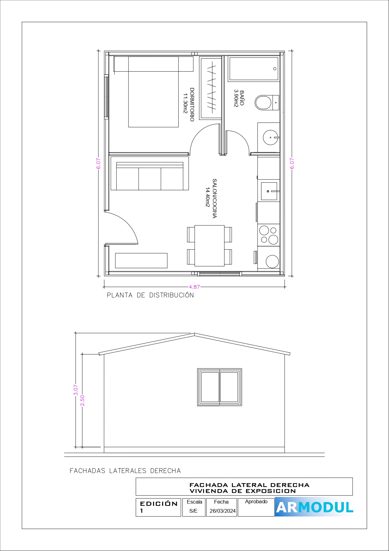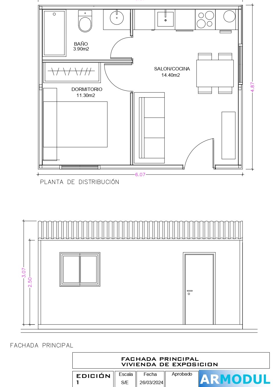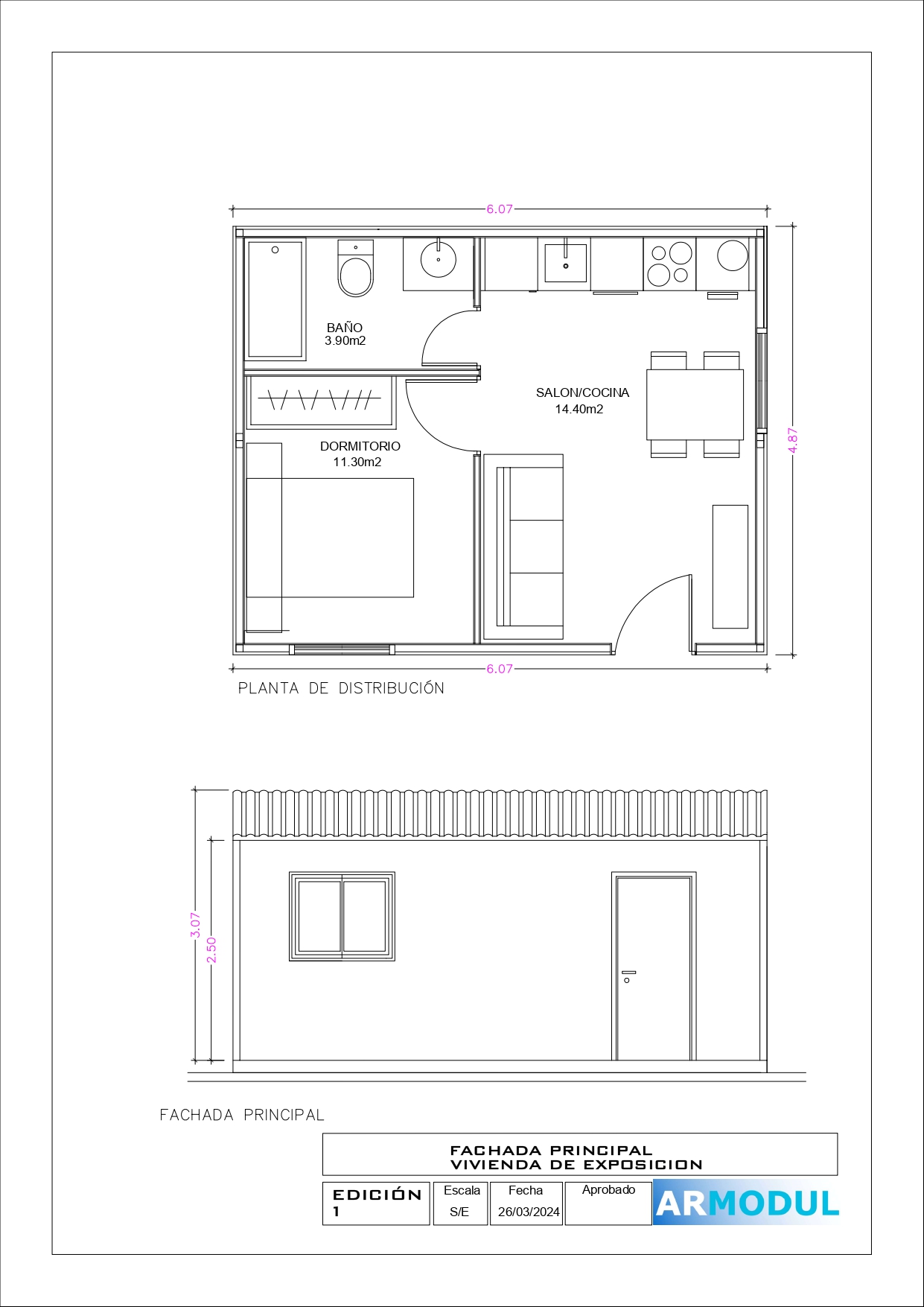 Vivienda 1 dormitorio Casa Modelo Lola, 28 m2